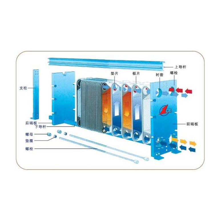 板式換熱器是由具有一定波紋形狀的金屬板片疊裝而成的一種新型高效換熱器,工作介質在兩相鄰板片形成的窄小曲折的通道中流過,通過相隔的板片傳熱。